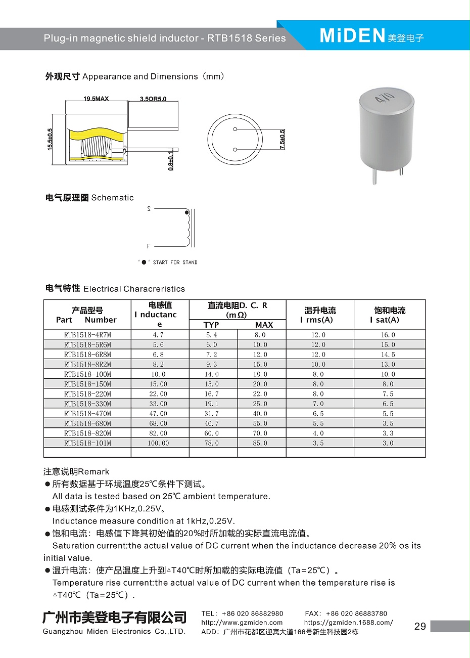 磁屏蔽結構:抗電磁幹擾(EMI)性能強組立式設計,結構堅固。低磁損,低阻抗,寄生電容小。工作溫度:-40℃~+125℃(包含線圈發熱)